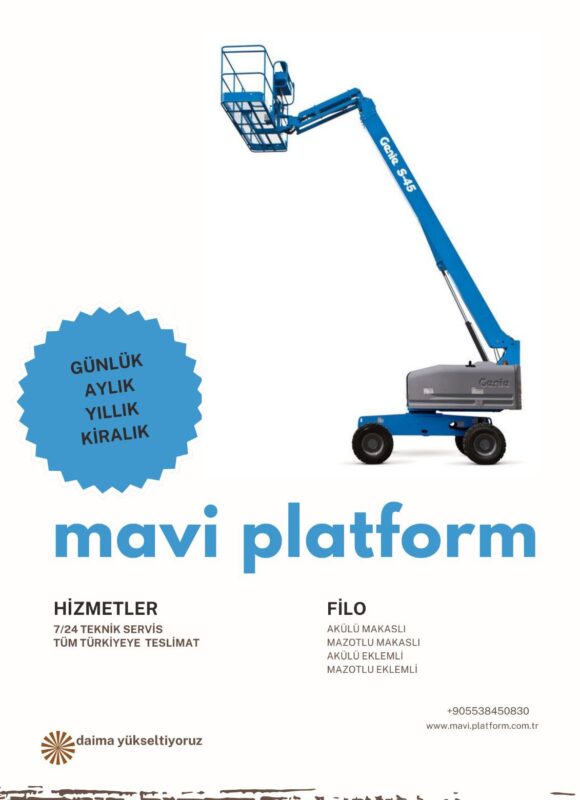 İzmir ve Manisa bölgelerinde, her projeye uygun platform çözümleri sunuyoruz. Akülü ve mazotlu seçeneklerimizle dar alanlarda bile yüksek noktalara güvenle erişim sağlarken, günlükten yıllığa uzanan kiralama seçeneklerimizle esnek ve bütçe dostu hizmetler sunmaktayız. Güvenli ve çevre dostu platformlarımız, kapalı veya açık alan fark etmeksizin tüm ihtiyaçlarınızda yanınızda